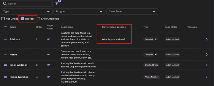 definitions in configuration settings. Enable the āReorderā checkbox to drag